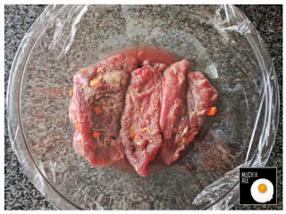 Retirar la grasa de la carne, según su preferencia. Pueden cortar la carne en trozos medianos si desean.