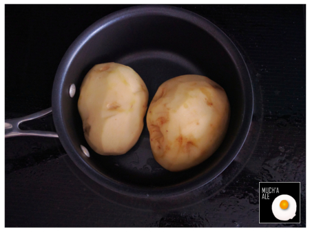 Retirar las papas del agua y dejarlas enfriar. Machucar las papas.