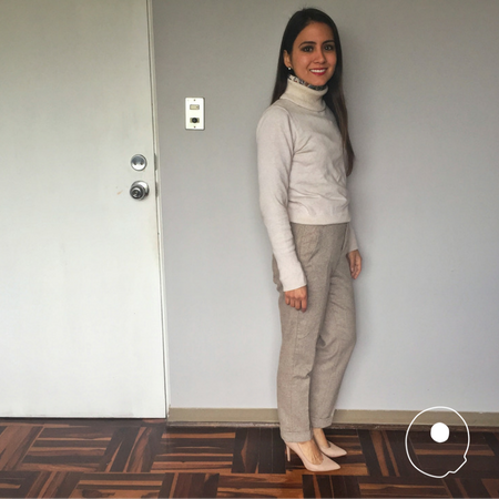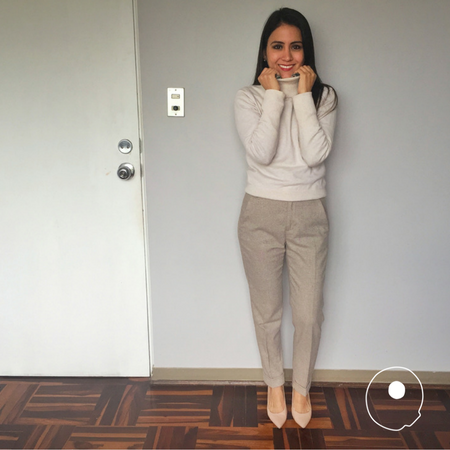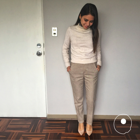Lo he pensado mucho y creo que aprendí a usar chompas de cuello largo sobre blusas abotonadas de Cher (Dressed Accordingly). Me encanta levantar el cuello de las blusas para que sobresalga por encima del cuello de las chompas de cuello tortuga. Como pueden apreciar, esta publicación nos regresa a los atuendos monocromático, esta vez con una combinación de beiges neutrales. Los tonos, que asemejan el nude, alargan mi silueta petite. English here.