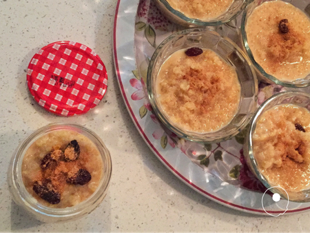 Al servir, decora con canela en polvo y pasas. Está bueno para llevarla contigo como postre a la oficina (ya saben cómo me encanta reciclar envases de mermelada).